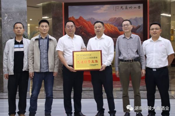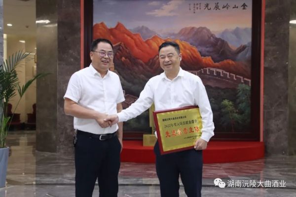 在調研期間,縣領導王鴻鵬親授沅陵酒業“湖南省農業產業化龍頭企業”與“2022年度沅陵縣聯農帶農先進經營主體”榮譽牌。