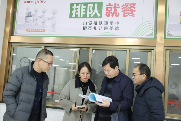 2023年2月22日沅(yuan)陵酒業(ye)參加創建“百優食(shi)堂(tang)”讓職(zhi)(zhi)工吃(chi)出幸福評(ping)選活動(dong),湖(hu)南省考評(ping)組、沅(yuan)陵縣總工會、沅(yuan)陵縣市場監督管理局分(fen)別(bie)對報名(ming)參與“百優食(shi)堂(tang)、幸福職(zhi)(zhi)工”的企業(ye)職(zhi)(zhi)工食(shi)堂(tang)進行評(ping)審指導。