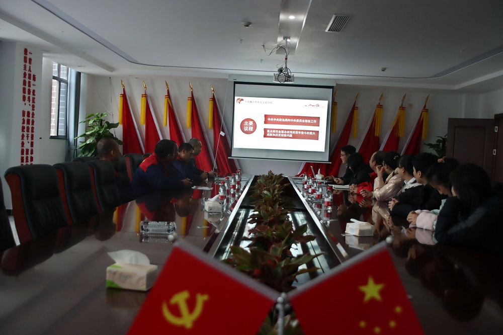 2021年(nian)(nian)11月(yue)20日,“悟全(quan)會(hui)精神(shen)(shen)、談心(xin)(xin)得(de)體會(hui)、做企業(ye)(ye)(ye)先鋒”中(zhong)共(gong)湖南沅陵大典(dian)酒業(ye)(ye)(ye)有限公(gong)司支(zhi)部(bu)書(shu)記(ji)蔣梁平組織支(zhi)部(bu)全(quan)體黨員、核心(xin)(xin)技(ji)術(shu)骨(gu)干全(quan)面(mian)學習(xi)(xi)十(shi)九屆(jie)六(liu)中(zhong)全(quan)會(hui)精神(shen)(shen),開展研(yan)討交流(liu),號召(zhao)酒業(ye)(ye)(ye)全(quan)體人(ren)員建載(zai)體、促學習(xi)(xi)、抓落(luo)實,推動全(quan)會(hui)精神(shen)(shen)深入(ru)人(ren)心(xin)(xin),落(luo)到實處,提高酒業(ye)(ye)(ye)向(xiang)心(xin)(xin)力、共(gong)筑酒業(ye)(ye)(ye)同心(xin)(xin)圓,用(yong)百年(nian)(nian)奮斗(dou)歷史成功(gong)經驗轉為(wei)對酒業(ye)(ye)(ye)發(fa)展的(de)新(xin)動源,為(wei)企業(ye)(ye)(ye)發(fa)展貢獻(xian)力量!